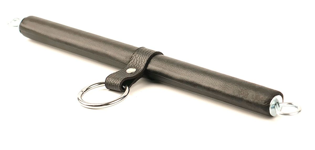 БДСМ-комплект: маленькая распорка и наручники. Выполнен из натуральной кожи. Длина распорки - 30 см.