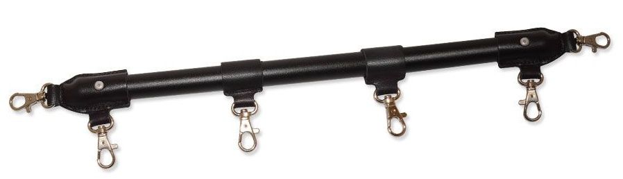 Фиксирующая BDSM-распорка от Sitabella поможет ограничить подвижность партнёра. Девайс состоит из цилиндрической металлической основы черного цвета и кожаных креплений из натуральной толстой кожи, к которой прикреплены карабины для фиксации наручников или оков. Центральные кожаные фиксирующие.
