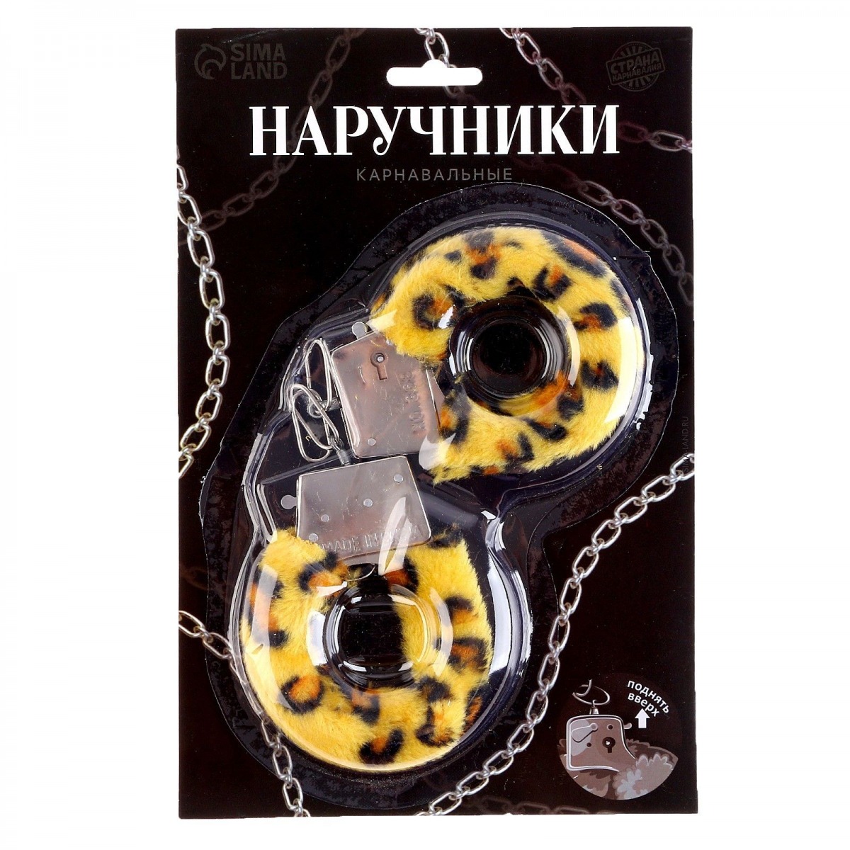 Металлические наручники с леопардовой плюшевой отделкой.